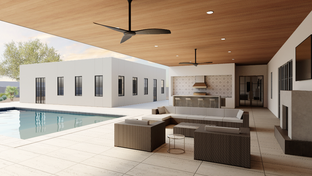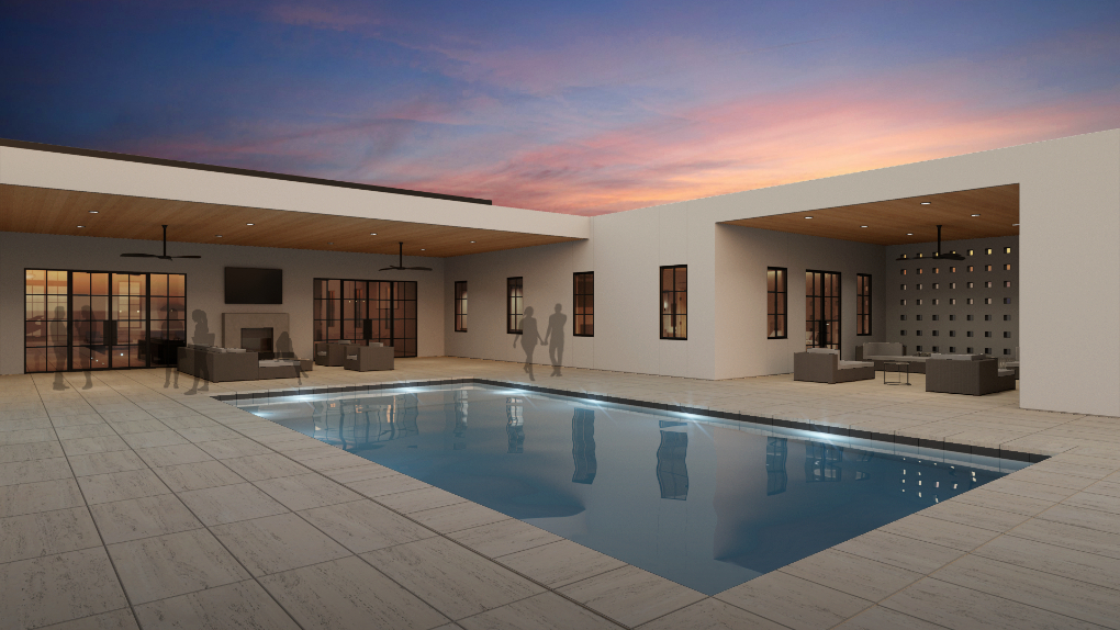 The living spaces surround a cloistered outdoor salon and pool deck with controlled cross breezes that creates passive cooling for the covered lounge areas. Th central space becomes the nexus of the house allowing for central gathering in all seasons with private quarters along the wings. Nautral light is captured through north facing clerestory windows and large glass openings under the shaded patio to limit solar heat gain while maintaining quality daylight throughout.